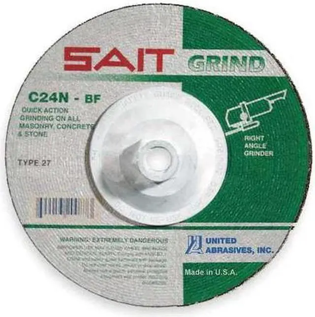 Depressed Center Grinding Wheel, Abrasive Material Silicon Carbide, Connector Size 5/8 In. -11, Connector Type Threaded Hole, Grit 24, Overall Diameter 4 1/2 in, Overall Thickness 0.25 in, Primary Material Application Cast Iron, Concrete, Masonry, Natural Stone, Compatible Tool Type Angle Grinder, Series C24N, Wheel Type Type 27, Maximum Operating Speed 13, 300 RPM, Grade Extra Coarse. This item has been restricted from sale in the following state (s): []