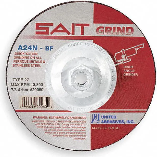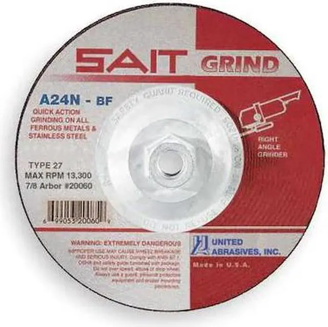Depressed Center Grinding Wheel, Abrasive Material Aluminum Oxide, Connector Size 5/8 In. -11, Connector Type Threaded Hole, Grit 24, Overall Diameter 7 in, Overall Thickness 0.25 in, Primary Material Application Cast Iron, Stainless Steel, Steel, Compatible Tool Type Angle Grinder, Series A24N, Wheel Type Type 27, Maximum Operating Speed 8, 500 RPM, Grade Extra Coarse. This item has been restricted from sale in the following state (s): []