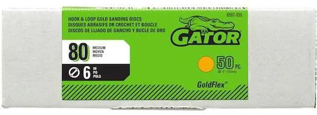 Hook-and-Loop Sanding Disc, Abrasive Type Coated, Abrasive Material Aluminum Oxide, Backing Material Cloth, Backing Weight D, Grade Coarse, Grit 80, Overall Diameter 6 in, Resistance Properties Load, Tear, Number of Vacuum Holes Non-Vacuum, Color Gold, Package Quantity 50. This item has been restricted from sale in the following state (s): []