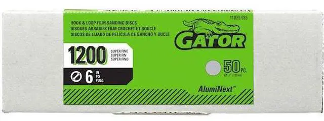 Hook-and-Loop Sanding Disc, Abrasive Type Coated, Abrasive Material Aluminum Oxide, Backing Material Cloth, Backing Weight C, Coating Coverage Open, Grade Ultra Fine, Grit 1200, Overall Diameter 6 in, Series G2, Resistance Properties Tear, Number of Vacuum Holes Non-Vacuum, Color Gray, Package Quantity 50. This item has been restricted from sale in the following state (s): []