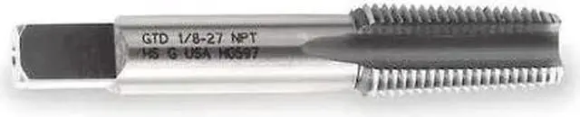 Pipe and Conduit Thread Tap, Thread Size 3/8 In. -18, NPT, Overall Length 2 9/16 in, High Speed Steel, Bright (Uncoated), Right Hand, Thread Length 1 1/16 in, 75 Percent Thread Drill Size 9/16 in, Thread Limit H2, Number of Flutes 4. This item has been restricted from sale in the following state (s): []