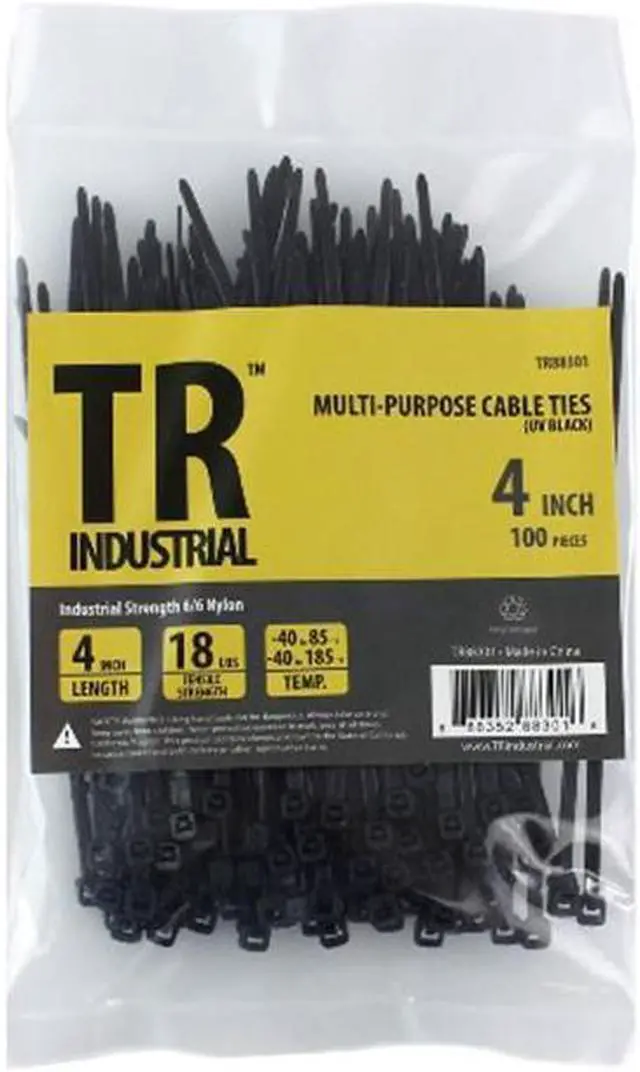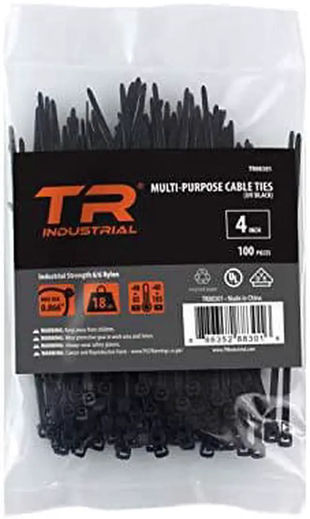 TR Industrial TR88301 Multi-Purpose UV Resistant Black Cable Ties - 4 in., 100 Pack