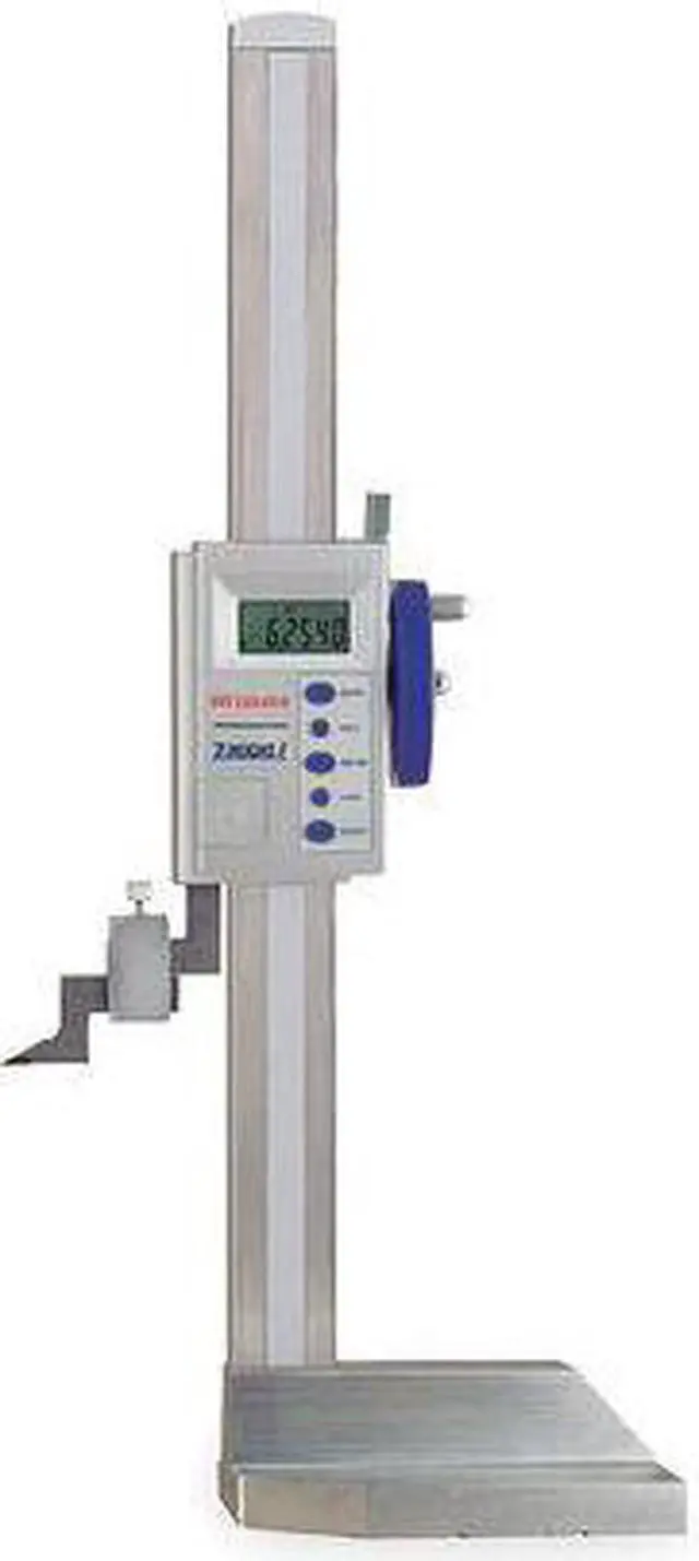 California Proposition 65: This product contains a chemical known to the State of California to cause birth defects or other reproductive harm. Item Digital Height Gauge, Counter Type Electronic Digital, Mechanism Feed Wheel, Construction Steel, Display LCD, Resolution 0.0005 in; 0.01 mm, Range 0 in to 18 in/0 to 450 mm, Accuracy +/- 0.002 in, Base Cast Iron, Screw Clamp Lever Locks Scriber at Any Position, Battery CR2032, Features Data Output, Hold/Data, Inch/Millimeter, Preset, Zero Set, Includes Carbide Tipped Scriber. This item has been restricted from sale in the following state (s): []