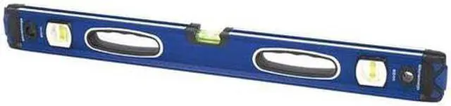 I-Beam Level, Number of 30 Vials 0, Number of 45 Vials 0, Number of Level Vials 1, Number of Plumb Vials 2, Top Read No Top Read Window, Vial Illumination None, Vial Material Acrylic, Vial Shape Barrel, Number of V-Grooves 0, Magnet Type Not Applicable, Number of Magnets 0, Accuracy - Standard 0.075, Frame Material Aluminum, Overall Length 24 in, Magnetic Nonmagnetic, Vial Types Included Level Vials, Plumb Vials, Color Black, Blue, White, Total Number of Vials 3.