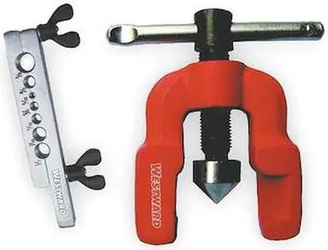 California Proposition 65: This product contains a chemical known to the State of California to cause birth defects or other reproductive harm. Flaring Tool, Product Type Flaring Tool, Compatible Tube Size 3/16 in, 1/4 in, 5/16 in, 3/8 in, 7/16 in, 1/2 in, 5/8 in, Material Application Aluminum, Brass, Copper, Flare Type Single 45 Degree, Maximum Wall Thickness 0.039 in, Cone Type Swivel, Number of Sizes 7, Non-Sparking No, Body Material Steel, Handle Design Sliding T, Tool Length 7 in. This item has been restricted from sale in the following state (s): []