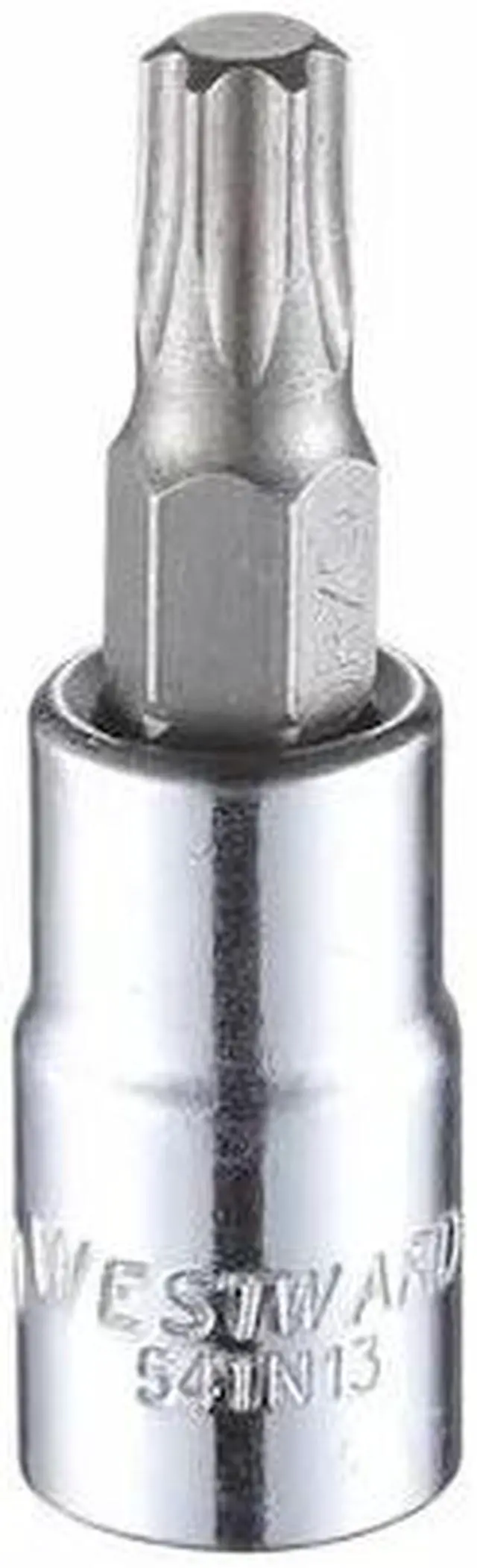 Crafted from durable alloy steel, the WESTWARD - 54TN13 Bit Socket ensures longevity and resistance to wear and tear. Its chrome finish not only enhances its aesthetic appeal but also provides additional protection against corrosion. The bit style is Torx(R), which aligns with the six-point measurement type characteristic of this design.