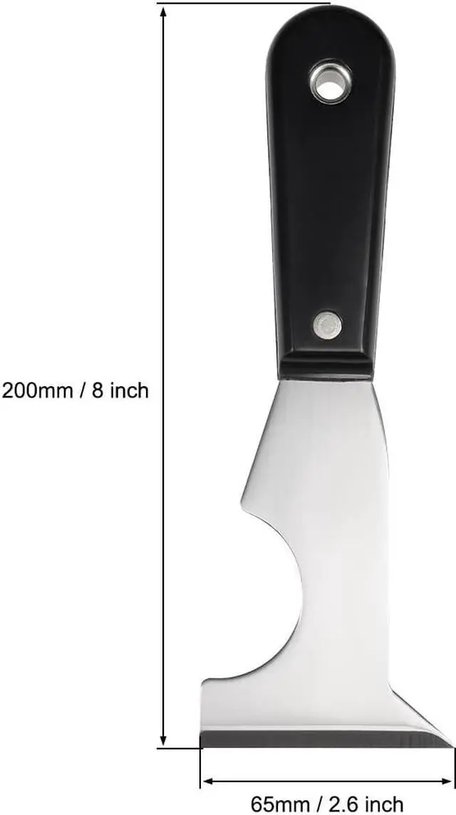 0.7mm steel blade can be used as a paint scraper, screwdriver, paint can opener, hammer, crown molding remover, putty scraper, box opener. One scraper blade replaces multiple hand tools in your toolbox.