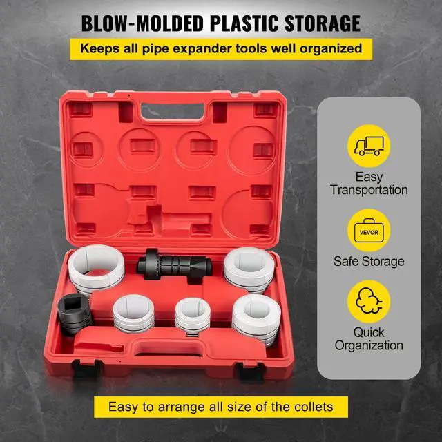Heavy-duty Construction: All collets are made of Aluminum alloy ensuring rugged rigidity over an extended service life. The coated surface of the exhaust pipe expander kit provides rust resistance