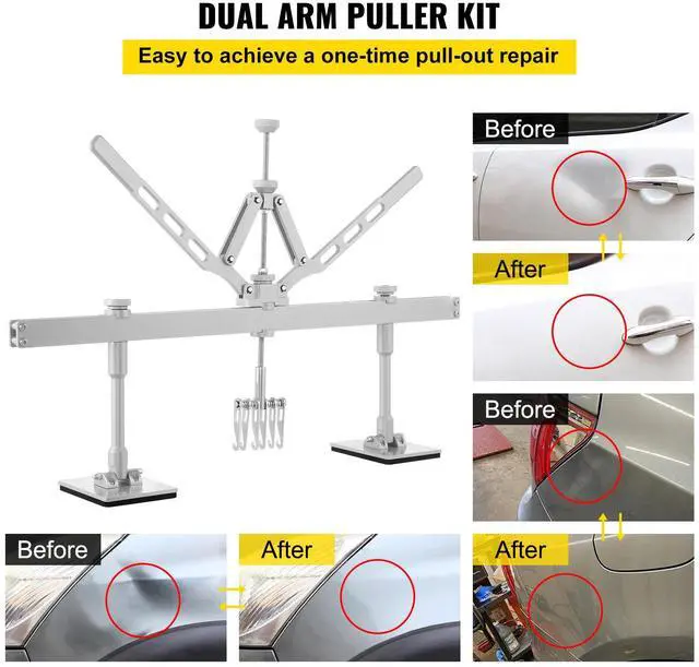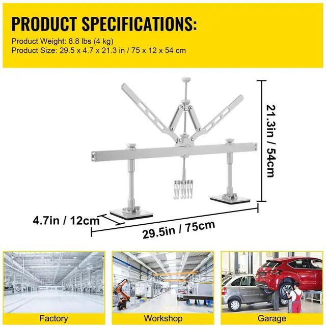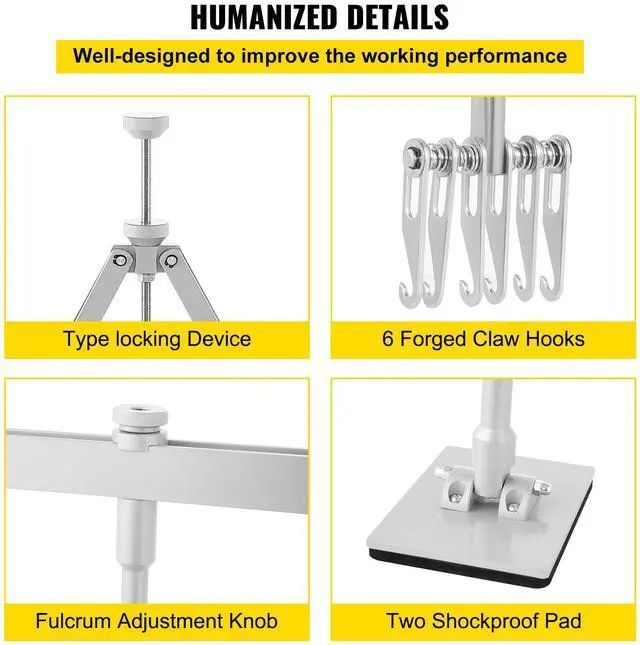 Double Arm Levers: Our 29.5" dent puller lever is equipped with dual screw handles, you can operate the handles to raise or lower the dent pull lever bar kit of our sheet metal repair machine, the whole process saves time and effort. By adjusting the arm handle, the lifting space is gradually raised, and the damaged part is continuously pulled out stably. The operation is surely stable and secure.