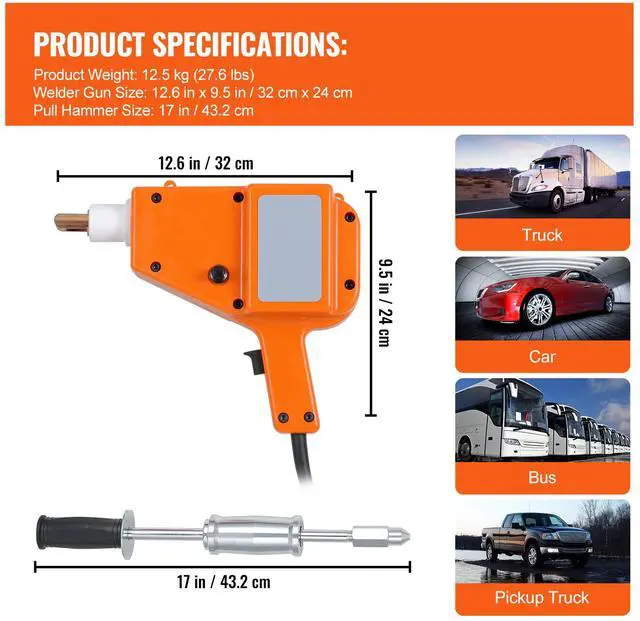 Welder Gun Dimensions (L x W): 12.6" x 9.5" / 32 x 24 cm