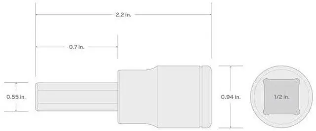 - 6-sided hexagonal tip is machined to precise tolerances for an exact fit with hex fasteners