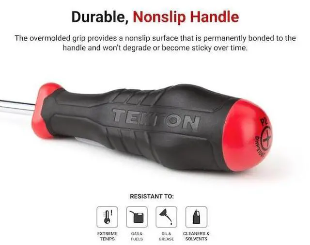 Blending power and speed, the unique handle of the TEKTON 3/16 in. Slotted x 8 in. High-Torque Screwdriver combines three-sided geometry for maximum torque and rounded top and bottom sections that let your fingertips work quickly to spin long fasteners.