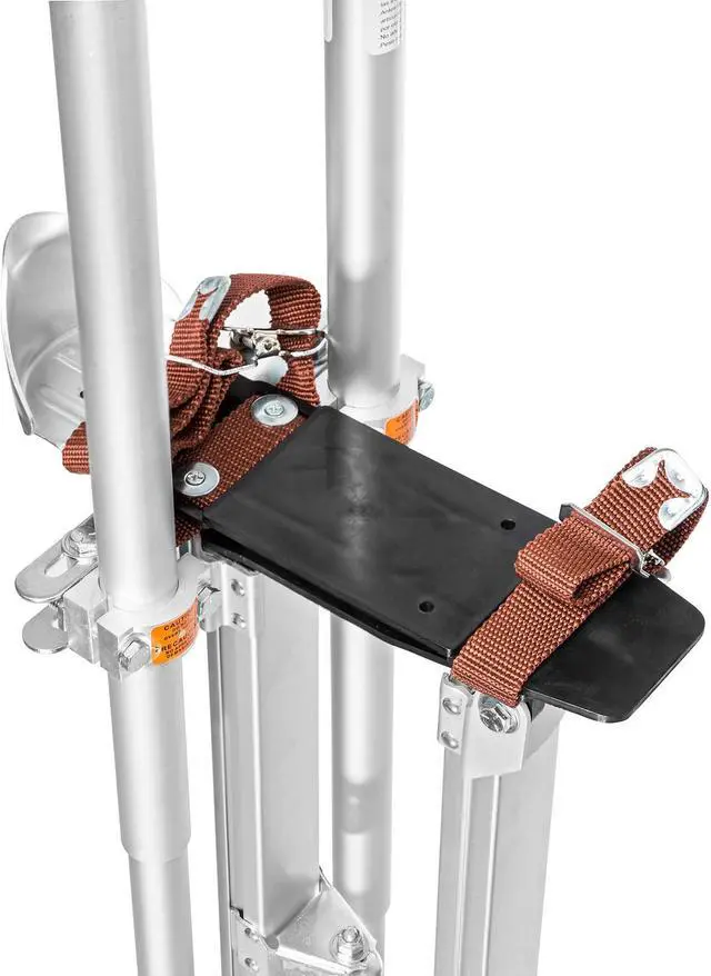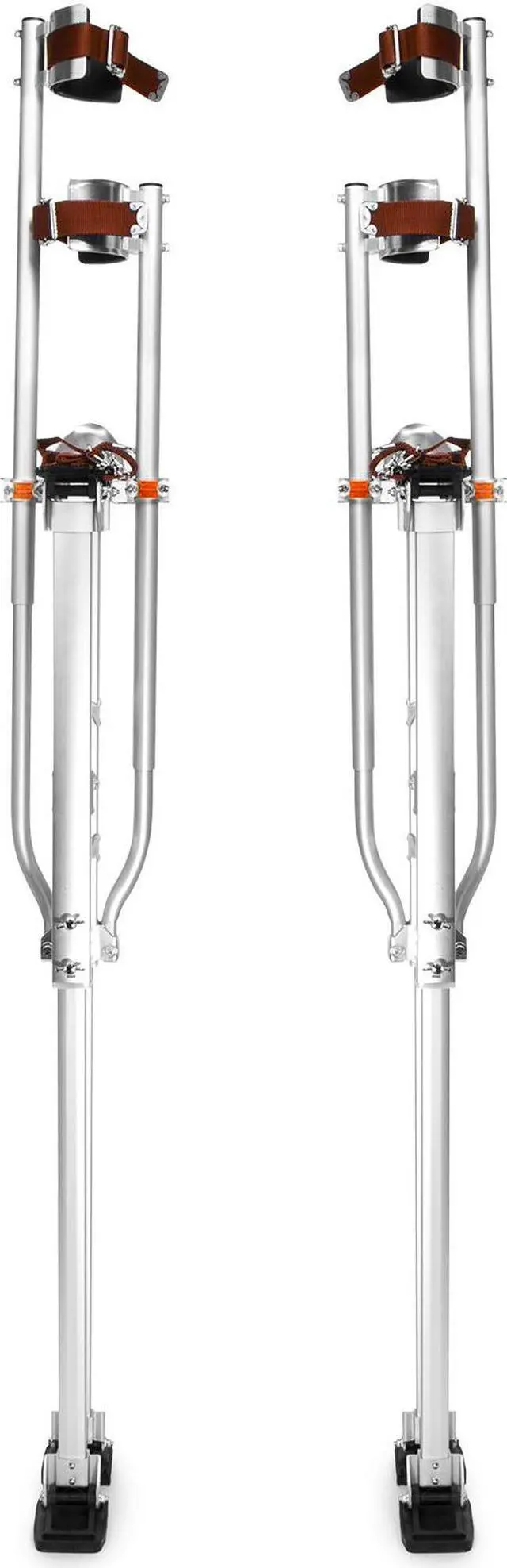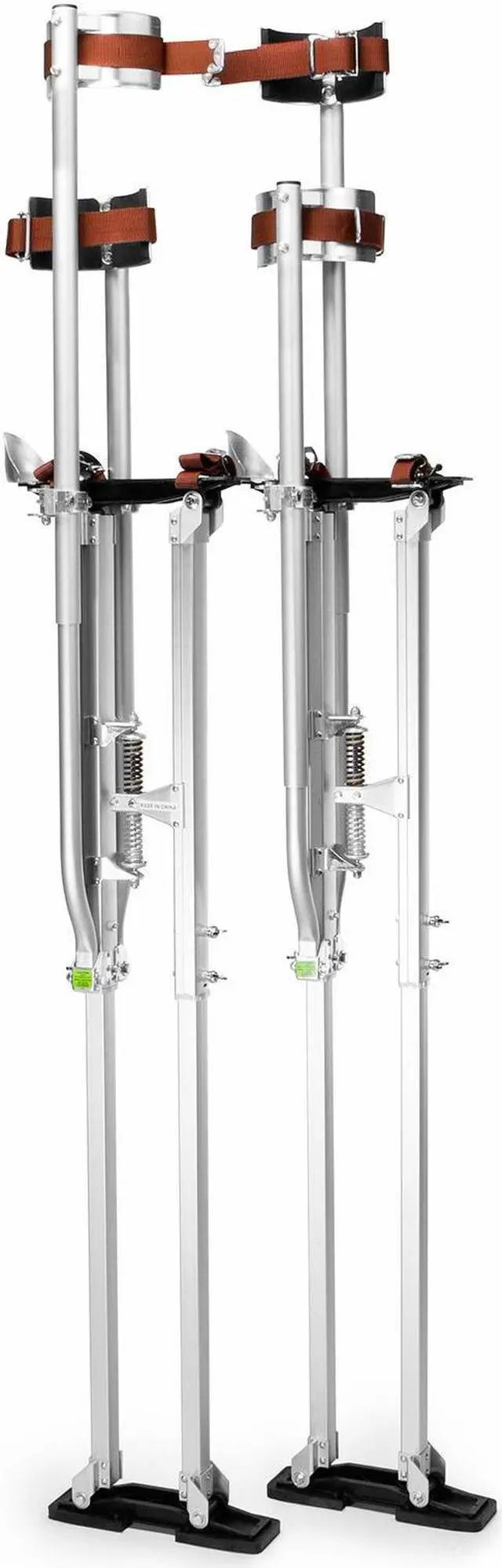 These premium drywall stilts by GypTool are built for professionals and suitable for drywall taping, painting, wiring, and much more. Precision manufactured from high-grade aluminum, these stilts are light enough to use all day, but sturdy enough to last for years. A non-rocking frame with overlapping, industrial strut tubes is paired with an adjustable dual-spring flex-system for excellent mobility. The height is adjustable using a wing-nut design; no tools are required to change the height. The shoe and leg straps are fully-adjustable with auto-locking buckles for quick stilt use/removal, and extra-wide padded calf braces plus three-position adjustable heel plates accommodate any user (stilts have 2 calf braces).