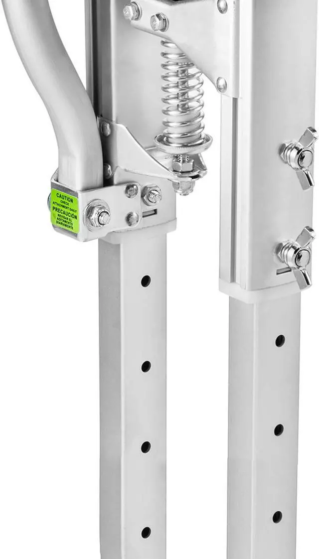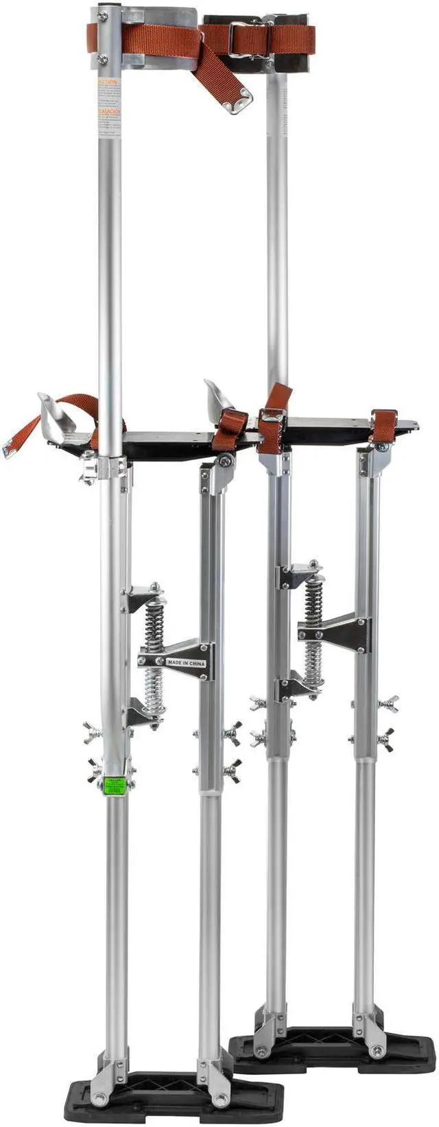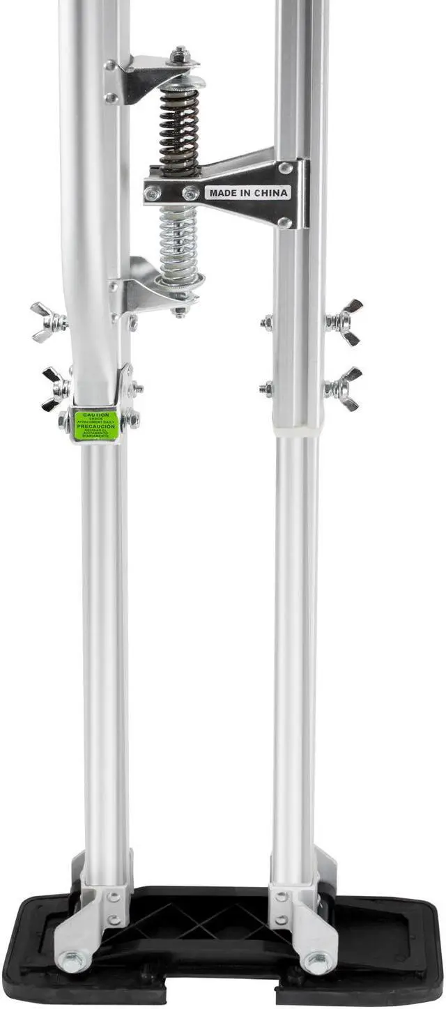 These premium drywall stilts by GypTool are built for professionals and suitable for drywall taping, painting, wiring, and much more. Precision manufactured from high-grade aluminum, these stilts are light enough to use all day, but sturdy enough to last for years. A non-rocking frame with overlapping, industrial strut tubes is paired with an adjustable dual-spring flex-system for excellent mobility. The height is adjustable using a wing-nut design; no tools are required to change the height. The shoe and leg straps are fully-adjustable with auto-locking buckles for quick stilt use/removal, and extra-wide padded calf braces plus three-position adjustable heel plates accommodate any user (stilts have 1 calf brace).