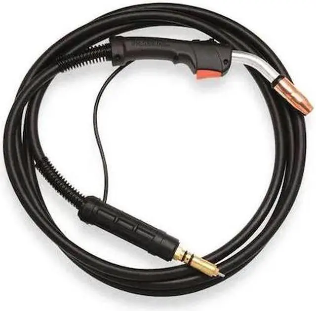 MIG Gun, MIG Gun Type Air-Cooled, Cooling Method Air-Cooled, Series H200L4, Maximum Current 200 A, Duty Cycle 60 Percent, For Gas Type CO2 (Carbon Dioxide), Mixed Gas, Maximum Wire Diameter 0.035 in, Cable Length 15 ft, For Rear Connection Type Hobart-Compatible, Handle Type Straight, Trigger Type Standard, For Wire Type Flux-Cored, Solid, Model 239173, Tip Series M-Series, Welding Processes Flux-Cored Welding (FCAW), MIG Welding (GMAW), Application MIG Welding. This item has been restricted from sale in the following state (s): []