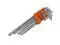 Contains: 0.05, 1/16", 5/64", 3/32", 7/64", 1/8", 9/64", 5/32", 3/16", 7/32", 1/4", 5/16", 3/8". Corrosion resistant satin finish. Made of chrome vanadium steel for improved strength. High-Torque tip design offers better access than straight tip, and better torque than ball-end hex keys. Includes plastic organizer with size markings. Meets ANSI standards.