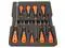 Set Includes: slotted screwdrivers (1/8", 1/4", 3/8"), Phillips® screwdrivers (#1, 2, 3), square recess screwdrivers (#1, 2, 3). Foam insert, precisely created using CNC routers, provides a tight fit for each tool in the set, keeping them neatly organized. Each tool slot is marked making tool identification quick and easy. All foam inserts are made using 3D design and two layers of high-density foam in contrasting colors (black and orange). The orange color acts as a visual indicator so you can spot missing tools quickly. Tray measures 11.2" (L) x 1.5" (H) x 13.2" (W) and fits in most standard size toolbox drawers. All screwdrivers meet ANSI standards.