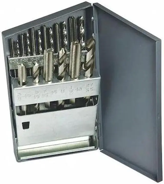 Drill Plug Hand Tap Set, Number of Pieces 18, Tap Type Plug Hand, Drill Bit Material High Speed Steel, Drill Bit Finish Bright (Uncoated), Drill Bit Dia. Included #21, #25, #29, #36, #7, 27/64 in, 5/16 in, F, U, Measurement System Fractional Inch, Impact Rated No, Smallest Drill Bit Dia. #36. This item has been restricted from sale in the following state (s): []