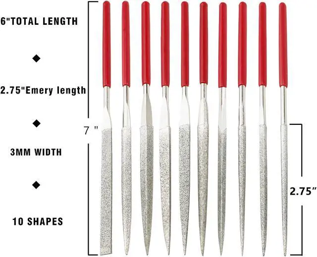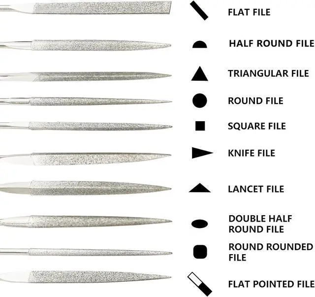 10 different shapes: flat, Round, Tapered Round, Half Round, Barrette, Crossing, Knife, Flat, Warding, Square, and Triangle, can be used for different jobs. Each diamond file is made of high alloy metal steel, which guarantees the life and strength of the steel file. Suitable for very small and delicate work, you can polish the details of the items and you can use it to polish the seams of the items. This durable set of high alloy metal steel files offers a good range for DIY and professional use of wood and metal. We are professional and responsible sellers, the pursuit of customer satisfaction is our service purpose, if you are not satisfied with our products, you will get a full refund.