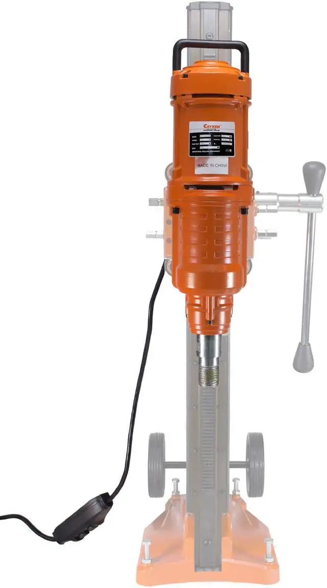 The Cayken 2550 Core Drill is designed for wet or dry core drilling. This drill will cut up to 10-inch holes in reinforced concrete, brick, stone, rock, ceramic, and fireproof materials. The Cayken 2550 has a 4,350-watt motor with 5.8 HP. The spline is 1-1/4 in. x 7 TPI. Drill features safety clutch and overload protection. Package includes wrench set, two (2) motor brushes, and 1/4-inch water valve with shutoff. Stand is not included.