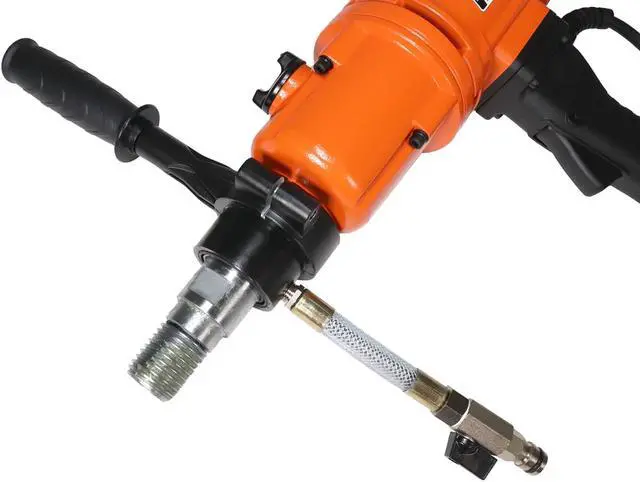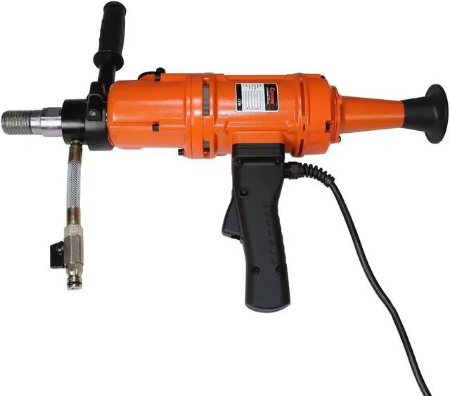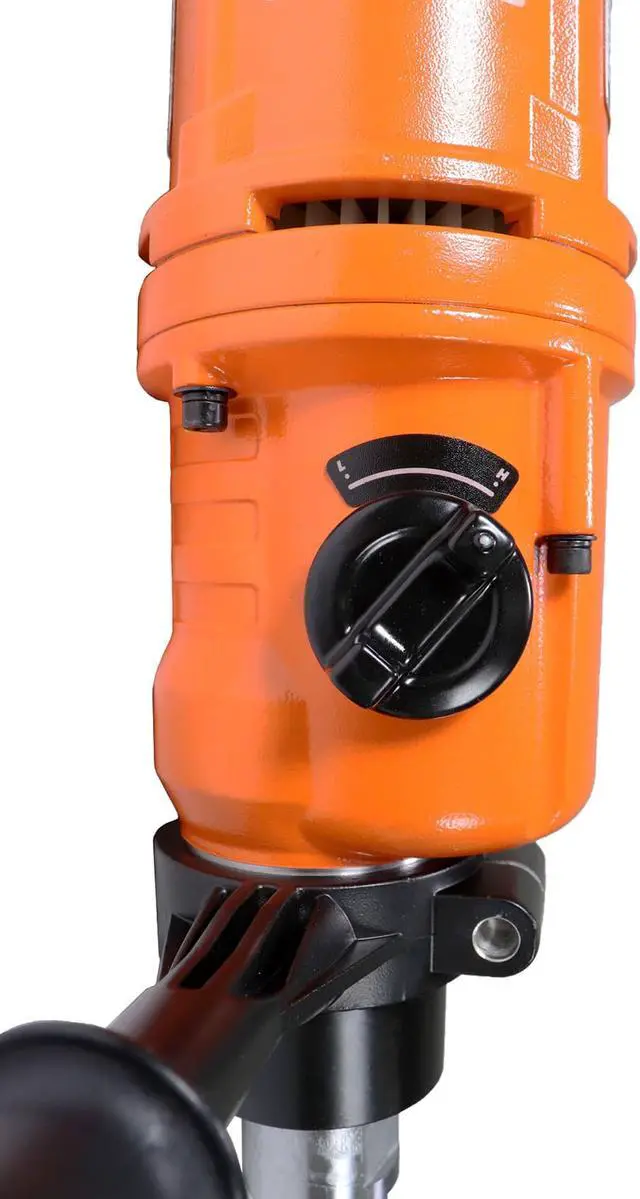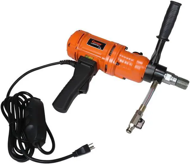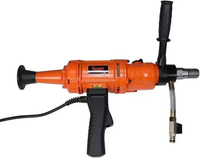The Cayken 1520-2BS handheld diamond core drill rig is designed for wet or dry drilling. This drill can be used on brick, stone, reinforced concrete, ceramic, and fireproof materials. Maximum drilling range in brick is 6 in. Maximum drilling range in concrete is 4-3/4 in. Drill features quick connect water valve with shut off.