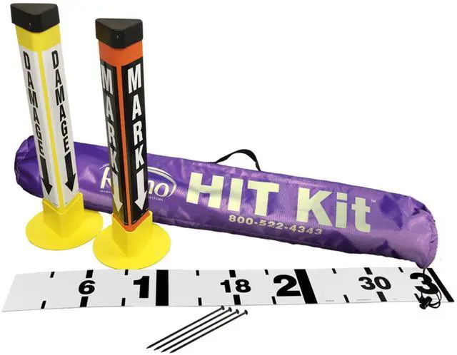 The Rhino HIT Kit is used to enhance root cause investigations and to accurately record damage to buried facilities such as fiber optic cable, pipelines, electrical lines, and more. It enables consistent photographic damage reporting by using a standard tool to record every accident which can reduce unnecessary and costly legal actions when damage occurs. Made with RhinoPoly Rhino's proprietary blend of thermoplastics. Country of Origin: United States.