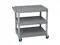 Utility Cart with Deep Lipped Plastic Shelves, Number of Shelves 2, Lip Style 4-Sided Lipped, Load Capacity 300 lb, Shelf Length 24 in, Shelf Width 18 in, Top Shelf Height 37 1/2 in, Distance Between Shelves 26 in, Handle Type Raised, Handle Height 37 in, Caster Brake Type Side Pedal Brake, Caster Wheel/Tread Material Thermoplastic Rubber, Caster Wheel Dia. 4 in, Caster/Wheel Configuration (2) Swivel, (2) Swivel with Brake, Cleanroom No, Lip Height 2 3/4 in. This item has been restricted from sale in the following state (s): []