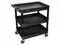 Utility Cart with Deep Lipped Plastic Shelves, Number of Shelves 3, Lip Style 4-Sided Lipped, Load Capacity 400 lb, Shelf Length 32 in, Shelf Width 24 in, Top Shelf Height 38 in, Distance Between Shelves 10 3/4 in, Distance Between Top and Middle Shelf 10 3/4 in, Distance Between Middle and Bottom Shelf 10 3/4 in, Handle Type Flat, Handle Height 38 in, Caster Brake Type Side Pedal Brake, Caster Wheel/Tread Material Thermoplastic Rubber, Caster Wheel Dia. 4 in. This item has been restricted from sale in the following state (s): []