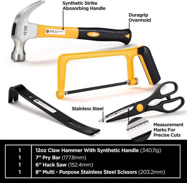 - (1) 12oz Claw Hammer w/ Synthetic Strike-Absorbing Handle