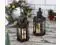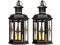Set of 2 Decorative Lanterns -10 inch High Vintage Style Hanging Lantern Metal Candleholder Black with Gold Brush
