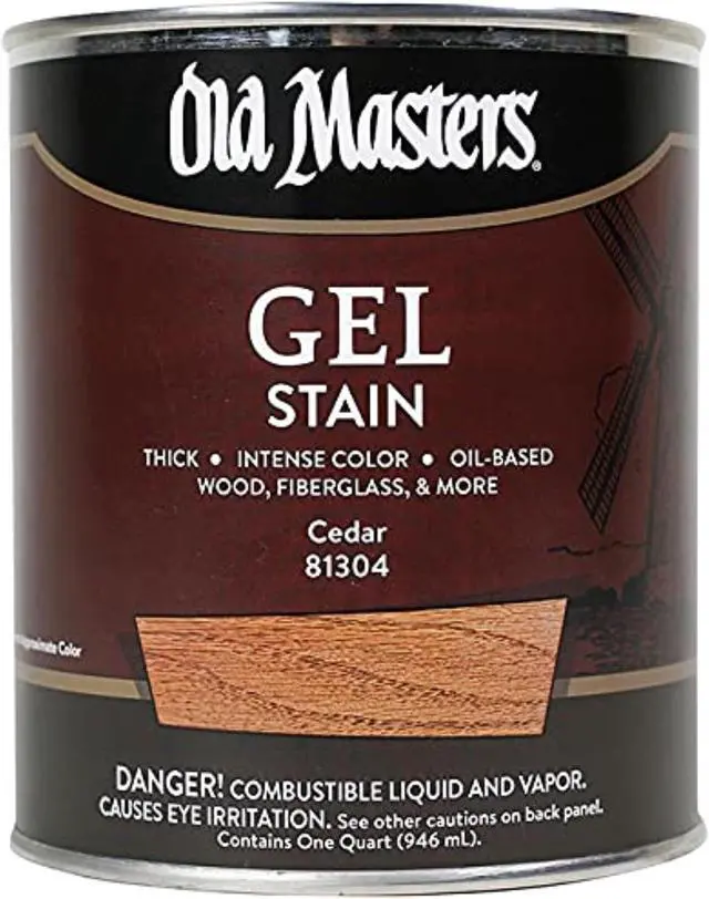 Old Masters® Gel stain is a highly pigmented, oil-based stain designed to achieve intense colors on interior and exterior wood, fiberglass, primed metal and composition surfaces. Its thick formula allows easy application and superior color control, necessary to achieve a rich and uniform color on most surfaces in a single application.