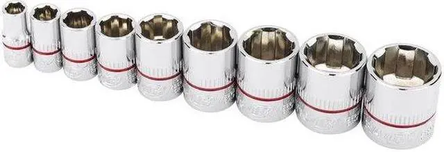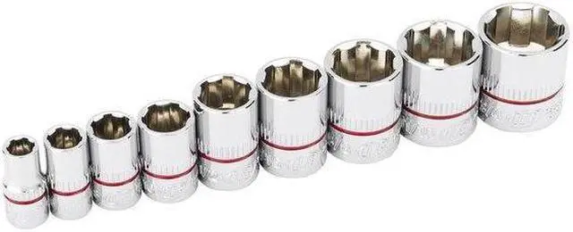 3/8 Inch Drive Sizes: 11/2, 9/16, 5/8, 11/16, 3/4 Inch FINISHED: Industrial-Grade Chrome Vanadium Steel with Mirror-Polished Chrome Plating BETTER GRIP: Signature Vertical Knurling for Better Grip and Easier Handling; Patented Twist Design That Grips Tighter as sockets Are Turned INCLUDES: Patent Pending Durable Thermoform Plastic Socket Tray That Keeps Sockets Organized and Easy to Identify by Standing Sockets on End for 360-degree Visibility QUALITY BUILT: Tools Meet or Exceed ANSI Standards for Fit, Finish and Torque COLOR: Mirror-Polished Chrome Finish MATERIAL: Chrome Vanadium Steel