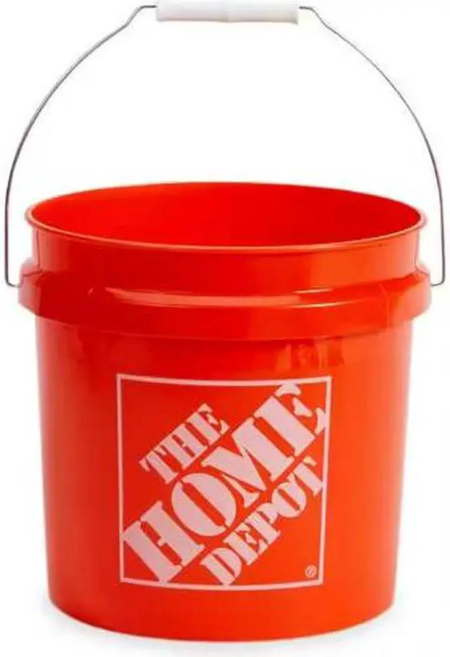 • 2 gal. Homer Bucket is ideal for small jobs around the house or job site. Use it to haul parts, paint, topsoil and other household or worksite items. This orange bucket features the original The Home Depot logo. The bucket is constructed of rigid plastic for exceptional durability.