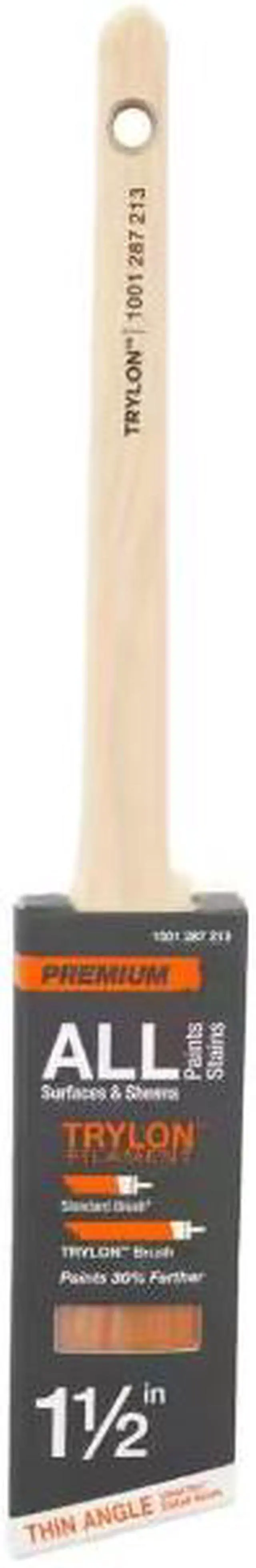 This Premium Trylon brush is made with a unique proprietary blend of ingredients which allows it to pick up and release more paint. It performs great in high heat and humidity. It offers better leveling with today's heavy-bodied, fast drying, low/no VOC paints.
