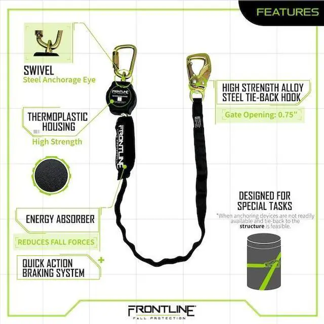 Tie-Back: Can be used to tie-off directly to anchoring devices or directly to the structure when suitable structure anchor is available