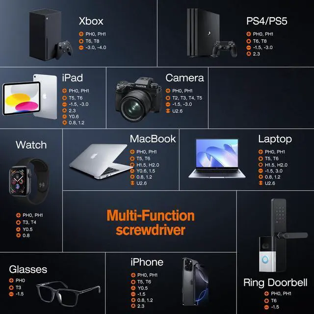 | Head Style | Flat, Pentalobe, Phillips, Swivel, Hex, Torx |