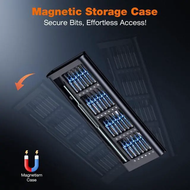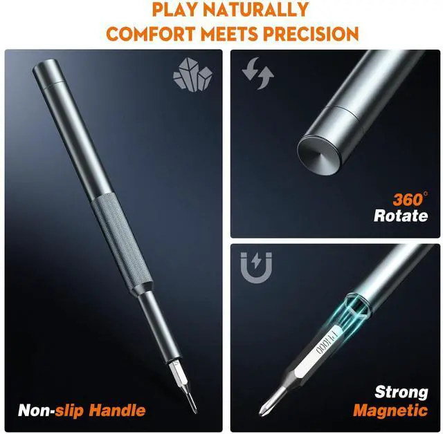 The NSZETZ 25-in-1 Precision Screwdriver Set is the ultimate tool kit for every DIY enthusiast and professional. Featuring 24 high-quality bits, this compact set allows you to tackle a wide variety of repair tasks, including smartphones, laptops, game consoles, and more. Whether you're fixing an iPhone, disassembling a computure , or repairing your PS5, the precision bits provide the right fit for any job. Made from premium Bearing Steel, each bit is heat-treated for maximum durability and resistance to wear, corrosion, and oxidation. With a hardness rating of over HRC65°, these bits are built to last and withstand frequent use. The strong magnetic tips hold screws securely, preventing frustrating drops and ensuring that you can work with precision, even on the tiniest of screws. The ergonomic, anti-slip handle is designed for comfort and control, allowing you to work for extended periods without strain. The smooth swivel cap enables effortless screw removal, while the frosted texture provides an additional grip for added stability. The compact and lightweight case is designed for easy storage and transport, making this kit perfect for professionals on the go or for anyone who loves to have their tools organized. Each bit is clearly labeled and arranged within the case, making it quick and easy to find the right tool when you need it. The sliding lid features a built-in magnet to prevent the bits from falling out, ensuring you never lose track of your tools during a job. This precision screwdriver set is more than just a practical toolits an experience. Whether youre repairing electronics or assembling small appliances, the NSZETZ screwdriver set provides the perfect balance of quality, convenience, and versatility. Ideal for a variety of repairs, this set is an indispensable addition to any toolkit, and it also makes a thoughtful gift for birthdays, holidays, or special occasions.