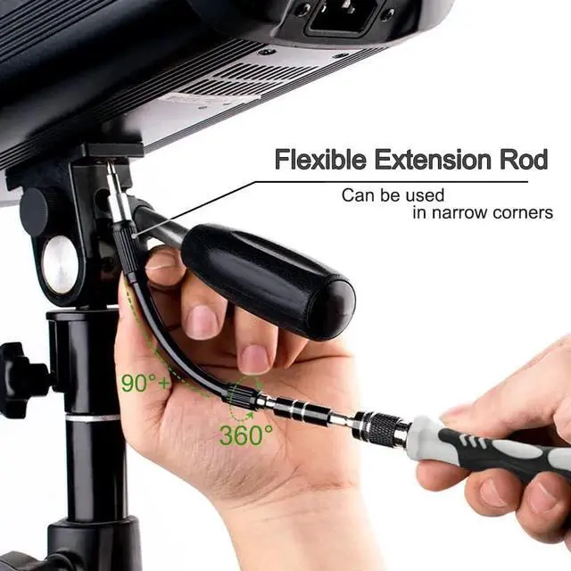 [Ergonomic Design for Maximum Comfort] The screwdriver features a smooth swivel cap for effortless rotation, while the PP+TPR handle with rubber particles ensures a secure grip. Includes a flexible extension tool to access hard-to-reach screws with ease.