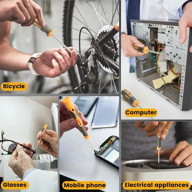 This magnetic screwdriver set is really useful for different jobs around your home or workplace. It's great for fixing small things like electronics, computers, and jewelry, as well as everyday tasks like assembling furniture or working with appliances.