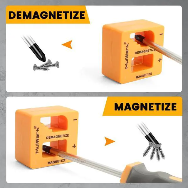 Insert a screwdriver or nut-driver into the hole on the pocket magnetizer, pull it out and your screwdriver is magnetized. Leave the magnetizer on the tool for extra strength. To demagnetize your tool, pass it through the hole on the pocket demagnetizer