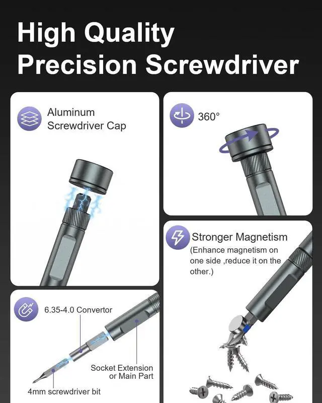 Stable and Reliable Magnetic System: This ratcheting screwdriver set comes with integrated extra magnet blocks that hold drill bits firmly in position, eliminating slippage and enhancing work efficiency. Excellent for game consoles, computers, watches, cameras and more.