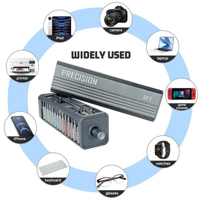 49-in-1 SetSPHAN precision screwdriver set includes 44 CHROME VANADIUM bits and 9 useful tools like a stainless steel screwdriver handle, brush,precision tweezers. This tool kit is suitable for laptops, smartphones, gaming consoles, cameras, watches, glasses, and more.