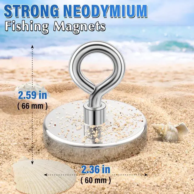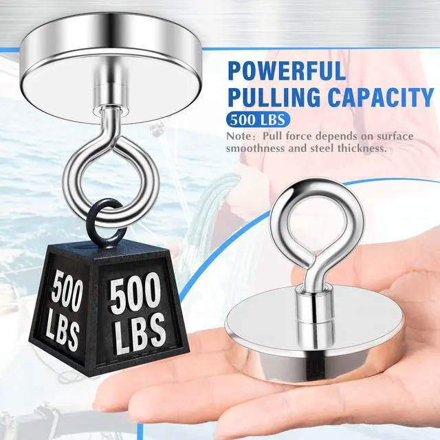 Super Powerful Fishing Magnet: This fishing magnet features a 2.36 inch diameter and delivers an impressive pulling force of up to 500 lbs under ideal conditions, making it a reliable choice to meet your diverse needs. Perfect for underwater retrieval, metal recovery, home storage, and tool pickup, this magnet is a versatile and indispensable tool for a wide range of applications.