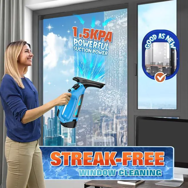 Activate the window vacuum cleaner with 1500Pa suction to remove dirty water instantly. The window vacuum squeegee cordless leaves surfaces clean, dry, and streak-free.