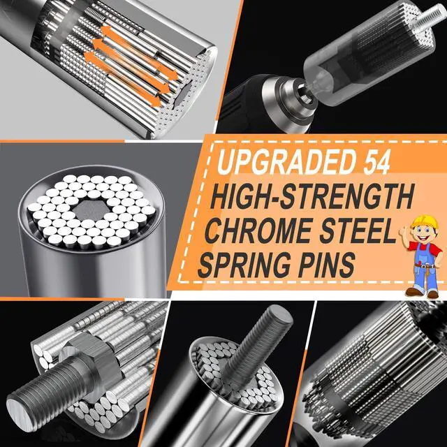- Universal socket can instantly adjusts to grip hex nuts, square nuts, hooks, crew eyes, tension screws, bolt heads, even worn and damaged heads!