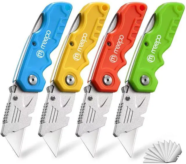 Comes with 4-piece utility knife ( Orange/ Yellow / Green / Blue ) and extra double edge razor blade. Buy once and benefit for life