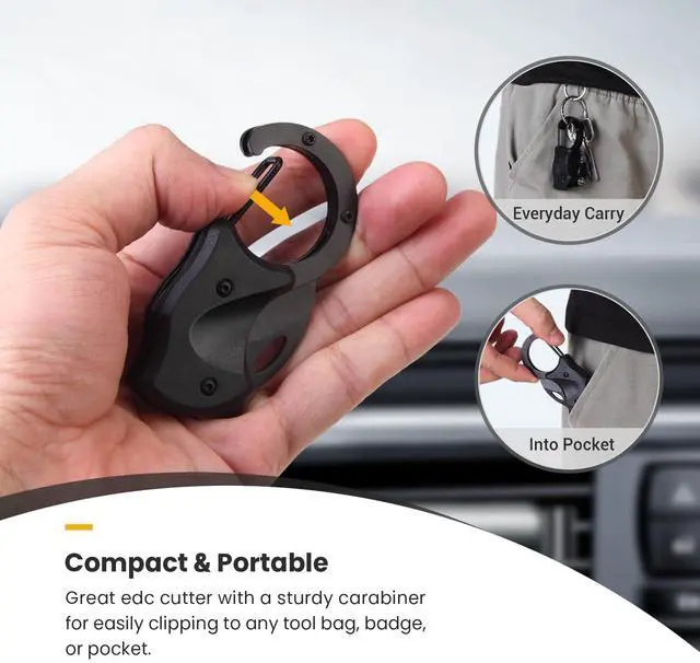 Lightweight and Portable: Measuring at a compact 3.94 inches in length and weighing just 2 ounces, this mini box cutter fits perfectly in your palm. Its small size and convenient foldable design make it the ideal carabiner keychain for men women everyday carry.