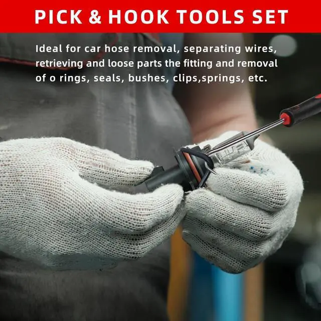 Ideal for car hose removal, separating wires, retrieving and loose parts the fitting and removal of o rings, seals, bushes, clips, springs, etc.