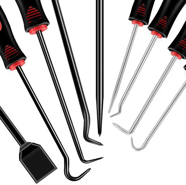 O ring pick set made of heat treated carbon steel provides enhanced durability and extended life.