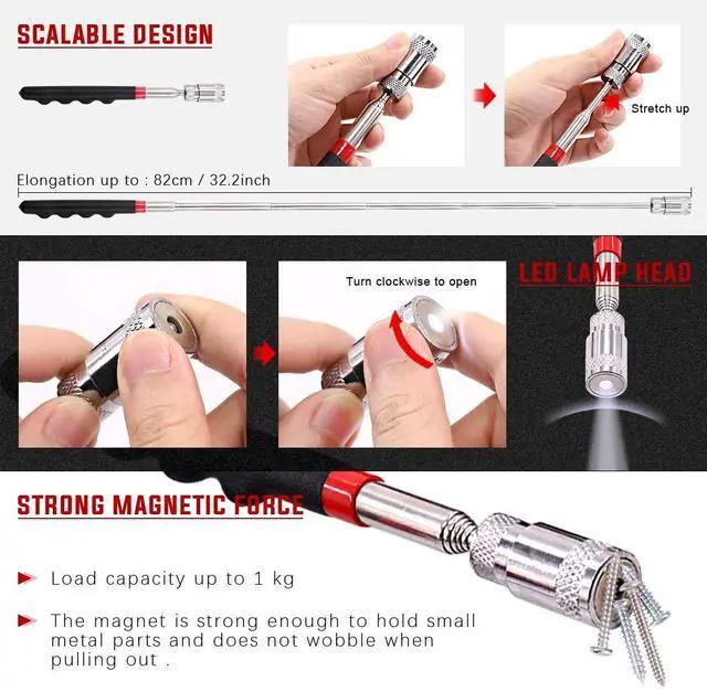 This magnet sticks will Easily find and grab small tools or hardware in hard to reach areas such as cars, behind the work bench, or around the house.